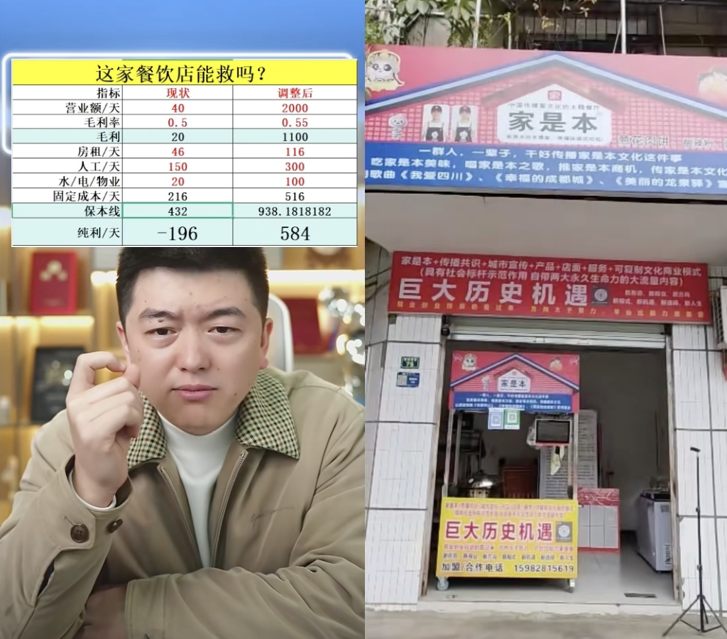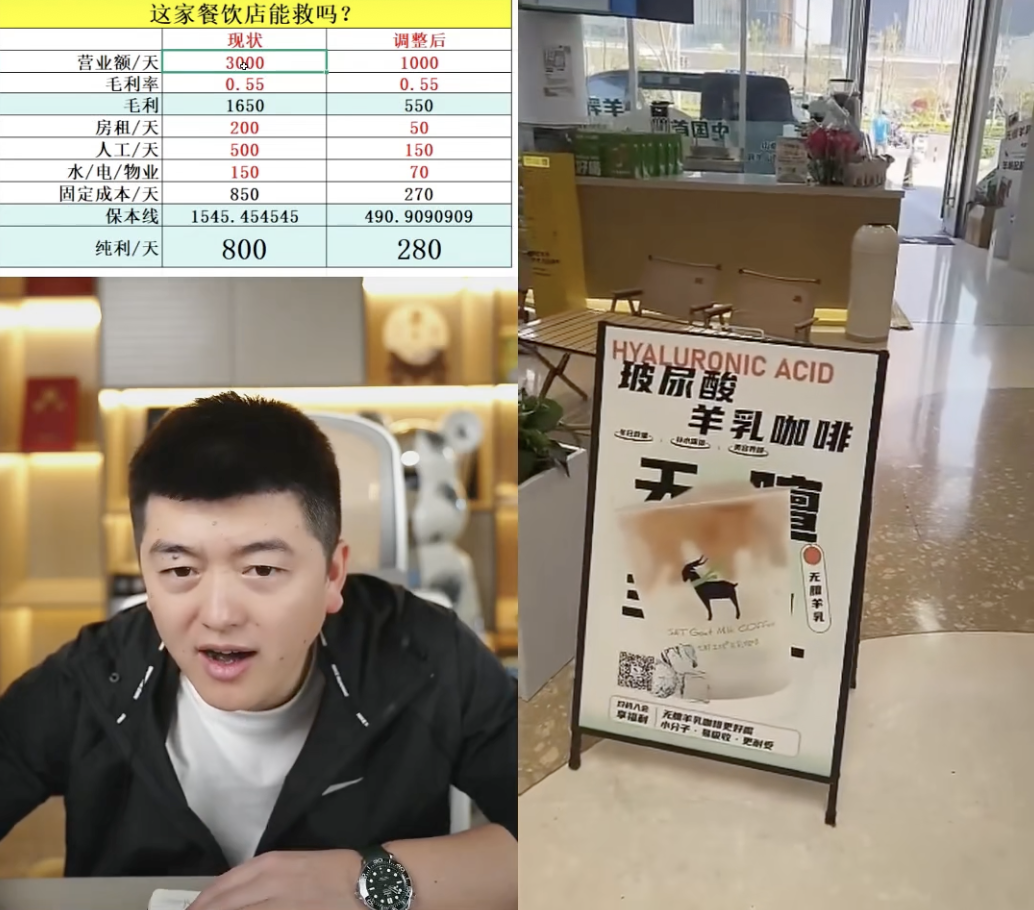 连线对面的勇哥受不了了。他打断老板,直接现实四连问:“你这个摊位卖的是啥?一天卖多少钱?毛利率多少?租金多少钱?”